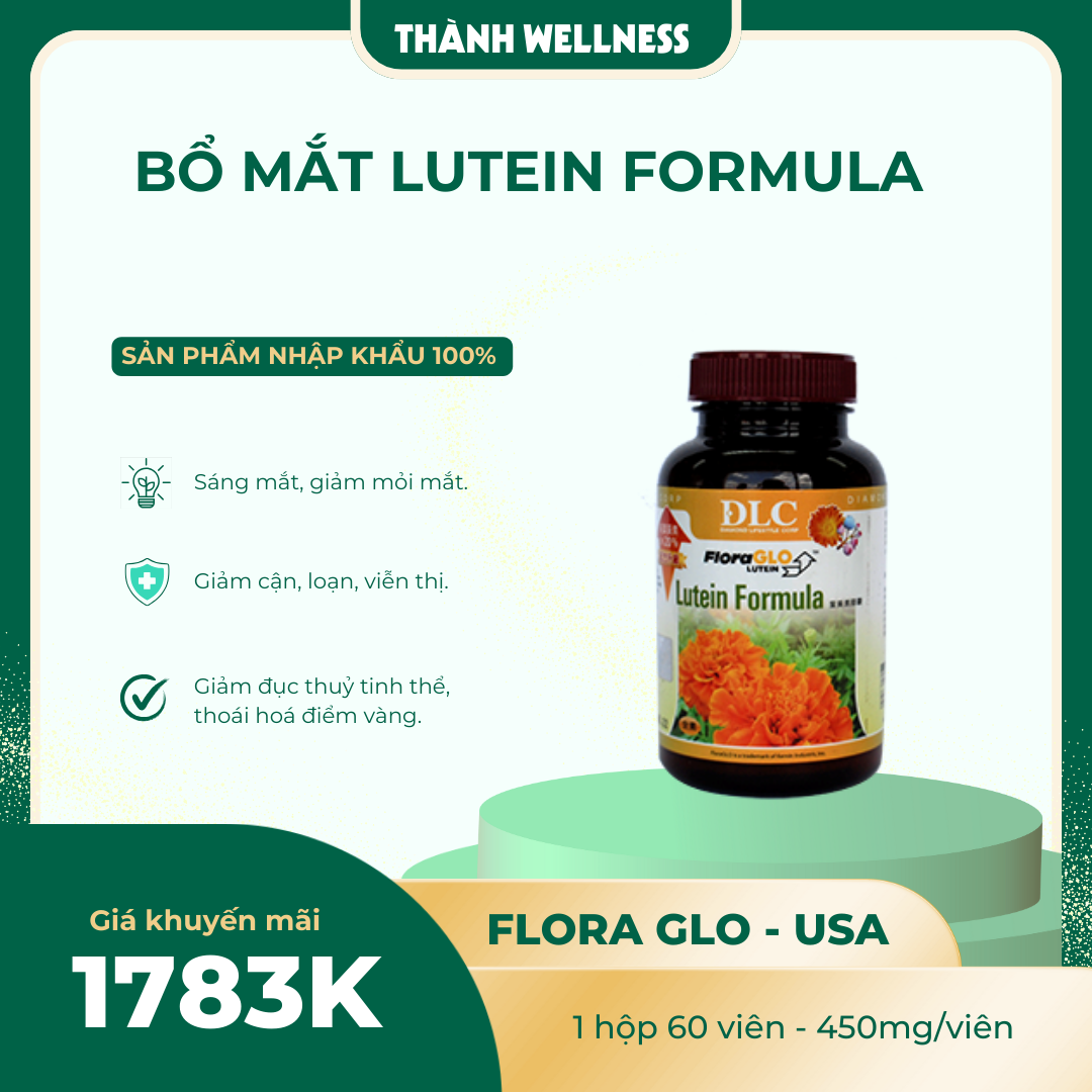 LUTEIN FORMULA FloraGLO® là công thức tiêu chuẩn “vàng” trong nhóm dinh dưỡng mắt, nhờ sở hữu Lutein + Zeaxanthin được cấp bản quyền từ FloraGLO® (Mỹ) — thương hiệu lutein nổi tiếng nhất thế giới, đã được chứng minh trong hơn 70 nghiên cứu lâm sàng. Sản phẩm còn chứa vitamin A, E, beta-carotene và anthocyanin có khả năng chống oxy hóa mạnh gấp 50 lần vitamin E, mang lại tác động toàn diện trên võng mạc – điểm vàng – giác mạc – thần kinh thị giác.
