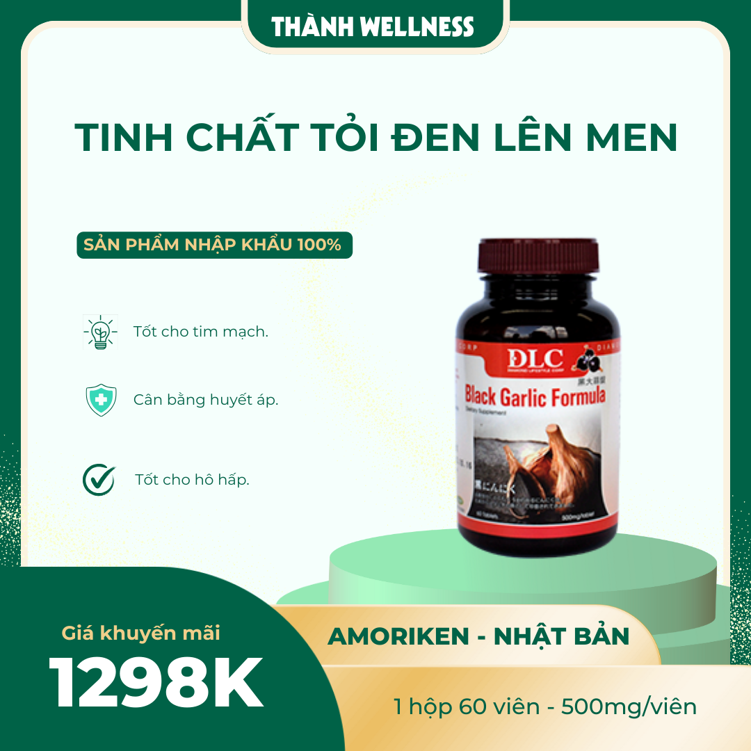 Tinh chất Tỏi Đen lên men DLC là một trong những sản phẩm có giá trị lâm sàng nổi bật nhất trong nhóm bổ trợ tim mạch – miễn dịch – chuyển hoá. Đây là chế phẩm được phát triển từ giống tỏi 6 múi Aomori (Nhật Bản), lên men tự nhiên 90 ngày ở nhiệt độ đẳng nhiệt 65°C, tạo ra hơn 400 hợp chất sinh học mới có hoạt tính mạnh hơn nhiều lần so với tỏi tươi. Quá trình lên men kiểm soát hoàn toàn bởi công nghệ Nhật Bản, giúp tỏi mất mùi hăng khó chịu, đồng thời chuyển hóa hoàn toàn các phân tử gốc sulfur thành dạng dễ hấp thu, an toàn và hiệu lực cao.